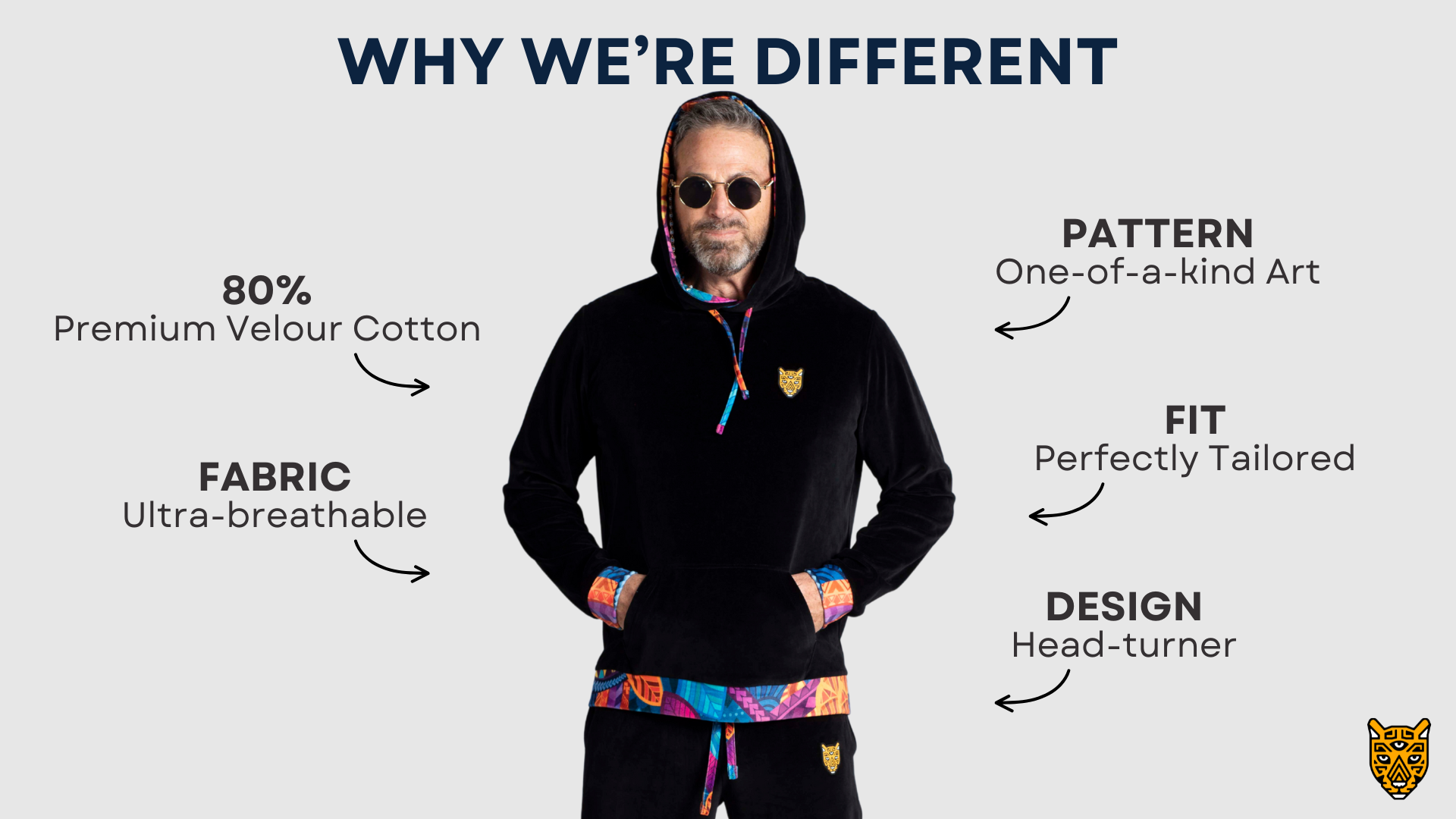 Crafted from premium cotton velour, this isn’t just a hoodie — it’s a wearable canvas for self-expression. Designed for men who value both comfort and originality, it delivers a luxuriously soft feel while letting you move, create, and explore with ease.