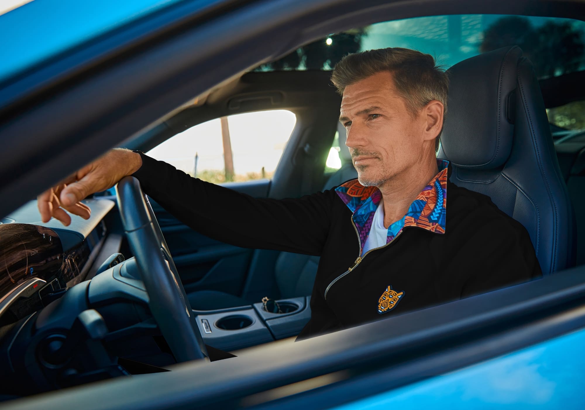 The premium Black Exterior is complemented by vibrant Artistic Interior Lining and details, including our signature gold panther emblem. Features include a YKK Gold Zipper and convenient Secret Pockets in both the zip-up jacket and pants..